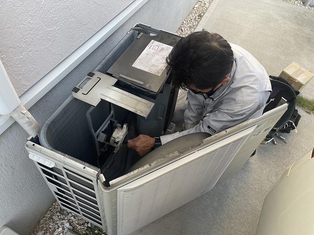 最近のエアコンは自己診断して悪い所を教えてくれます。今回は、外機のファンモーター異常の表示。通常、ファンモーターの異常の時はファンモーターと基板を同時交換します。でも今は秋で気候も良く、お客様と相談の上ファンモーターのみの交換にしました。が・・・それが裏目。交換しても同じエラー!!仕方なく基板の交換。試運転開始後数分・・・エラー発生!!(汗)今度はコンプレッサーの不具合エラー!!「どこまで壊れとるの??」と、お客様もあきれ顔。エアコンも複数同時にエラー表示してくれませんのでホント稀にこういうことが起こります。コンプレッサーの修理は高額になること、修理後次にエラーが出ないとは限らないこと、使用年数が間もなく10年になることを加味してここで方向転換。新品に交換することになりました。幸い、保険で交換できそうなのでお客様には感謝されました。が、ここまでの修理代金はいただくわけにはいきません。(泣)弊社は、成功報酬。今までもこれからも頑張っていきます。今回はいい勉強になりました。弊社では、相談無料・見積無料、もちろん成功報酬!名古屋市・半田市・春日井市を中心にその近郊。三河も行きます!!遠方もご相談ください。お問い合わせお待ちしています!!